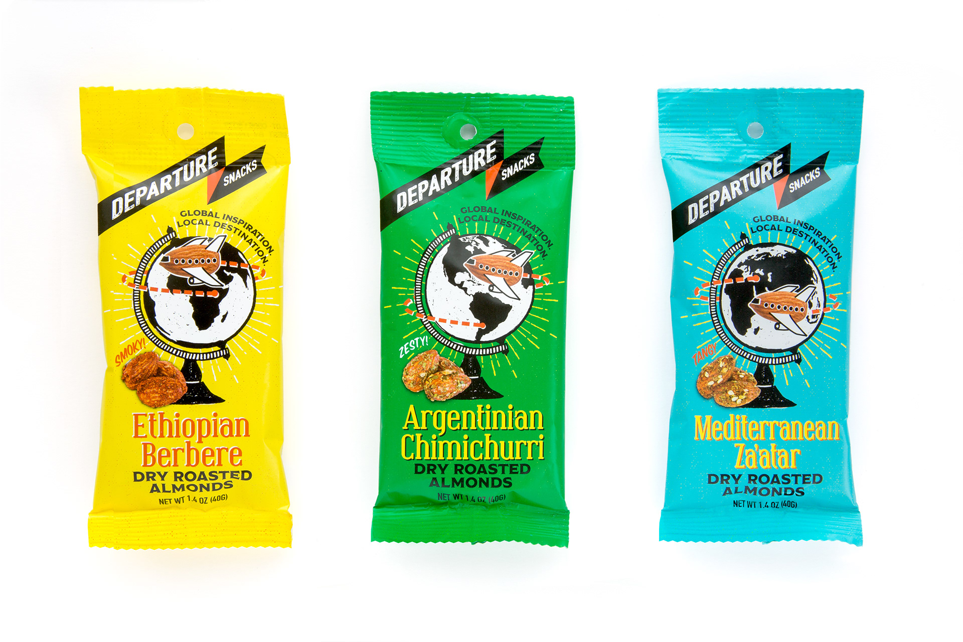 Logo and packaging for a line of healthy, globally inspired snacks that allow you to travel the globe through your taste buds.