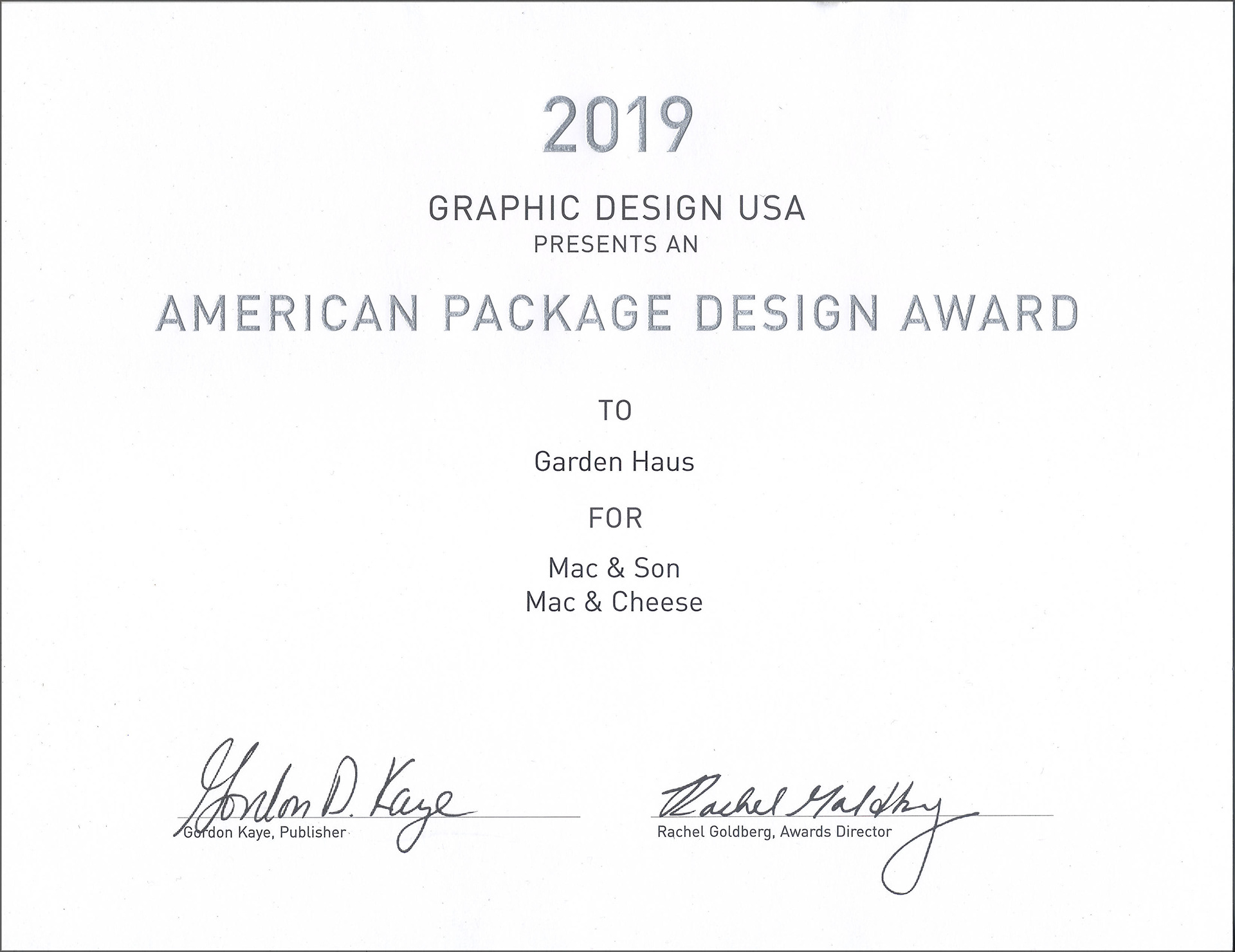 MAC & SON – 2019 GD USA PACKAGING DESIGN AWARD WINNER